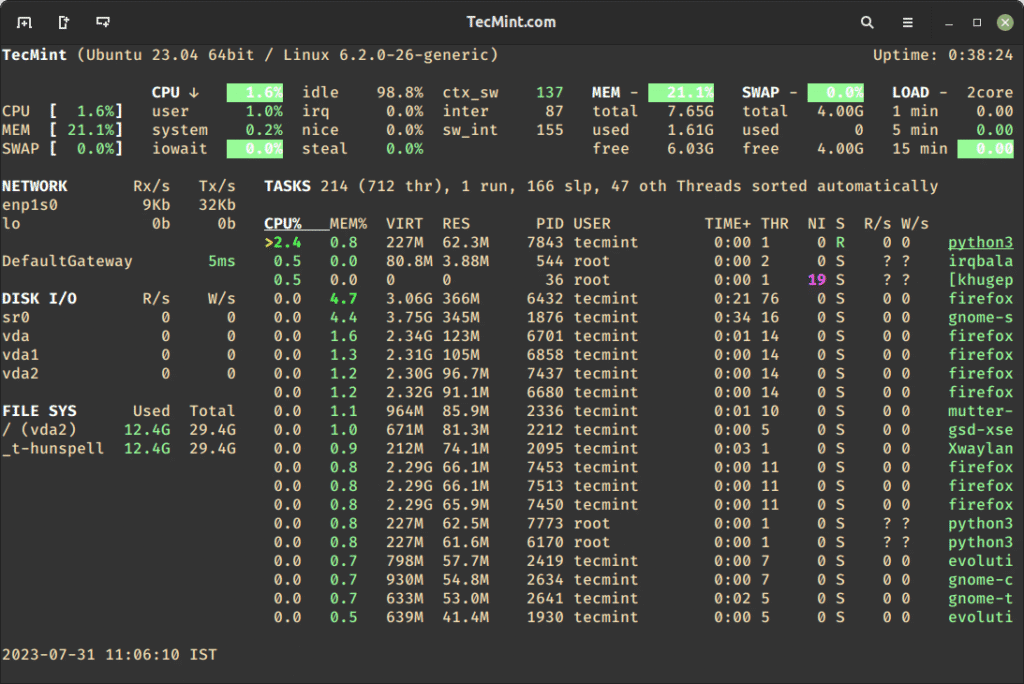 Glances is available in most Linux distributions and is easy to install.